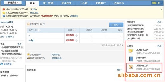 1.登录网销宝推广后台,在右下角的工具箱内,选择"桌面快捷方式",点击